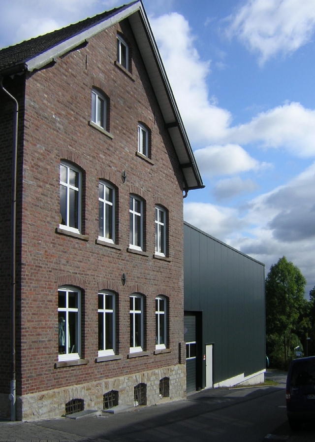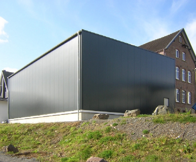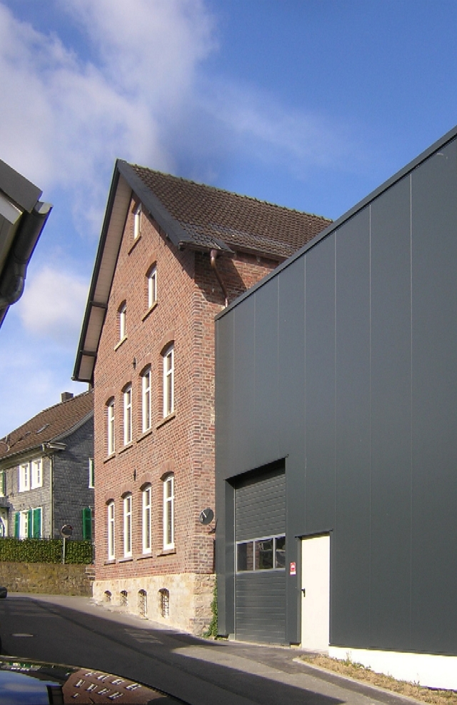 ein Verkaufsgebäude mit Lagerhallenanbau