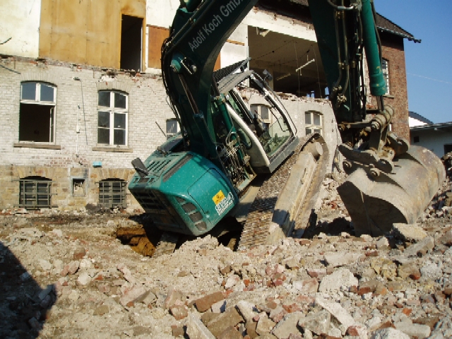 Einbruch des Abbruchbaggers in einen bis dato unbekannten Keller. |