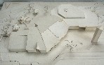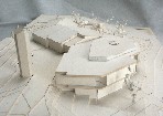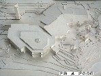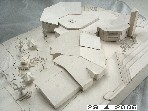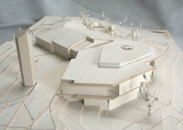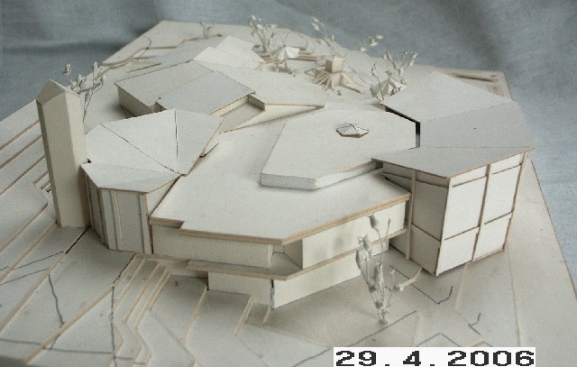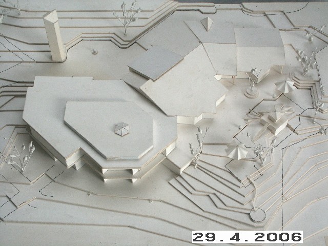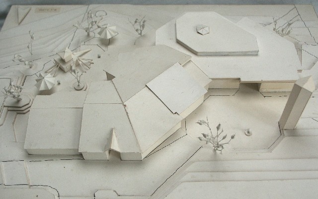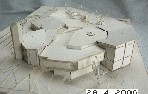 Wettbewerbs-Modell mit Foyer, rechts vor Glockenturm und Erweiterung