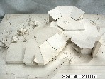 Modell des Bestandes Gemeindehaus , vorne, mit Kindergarten, hinten |